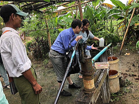 平成30年10月22日 ネピドー地区農村部にあるフッ素汚染地区のフィールド調査( Aungmingalar村) 住民の口腔内検査及び飲料水(井戸水)の水質検査 「花田先生奮戦記」 対象の村まで野を越え、川を渡り、田んぼを横切りたどり着きました