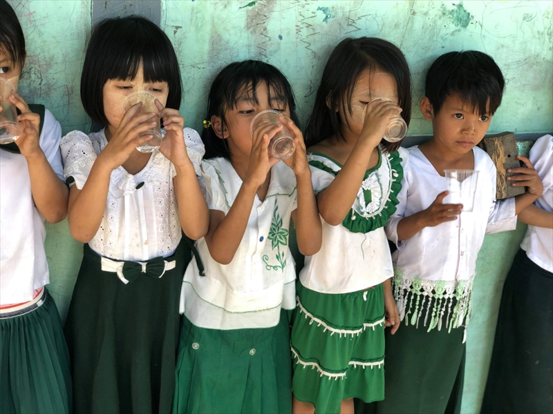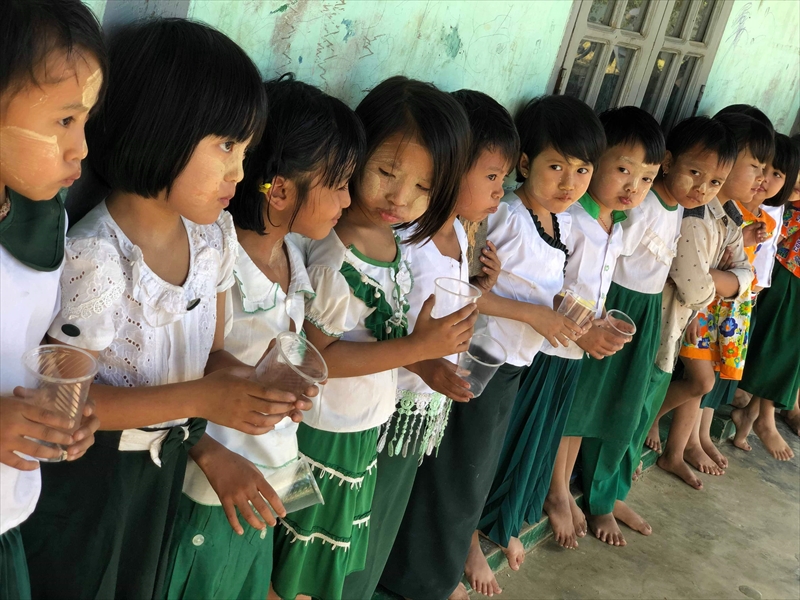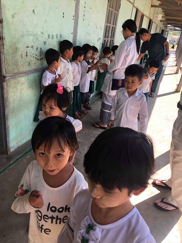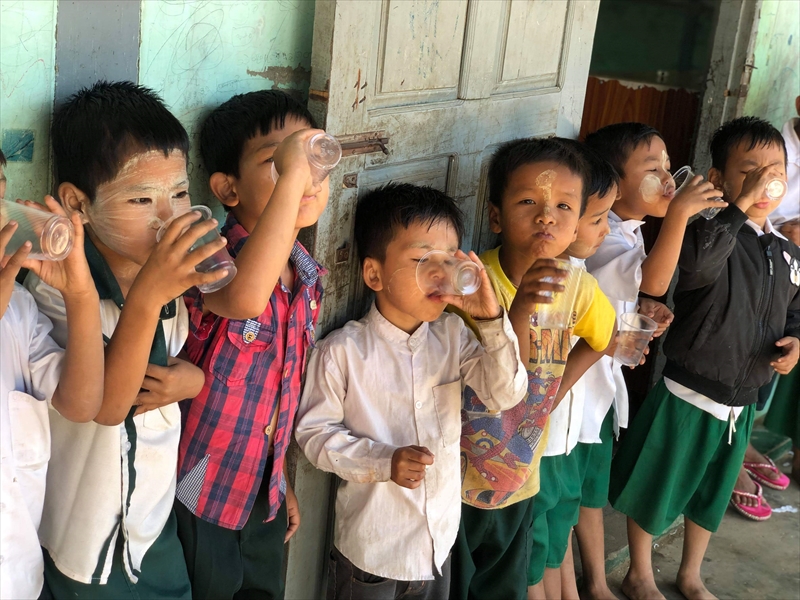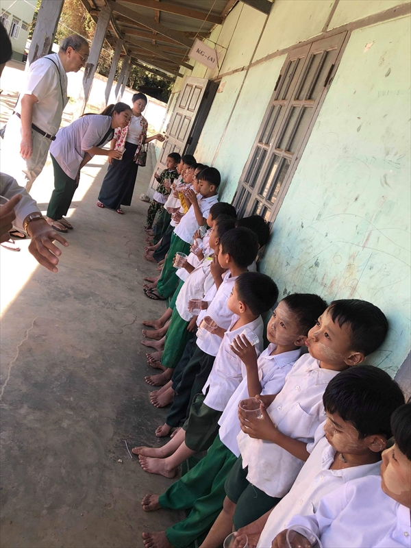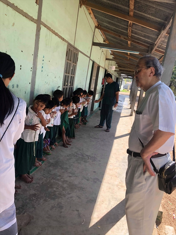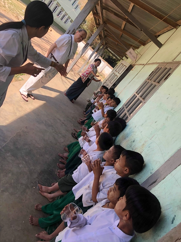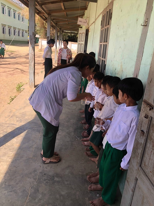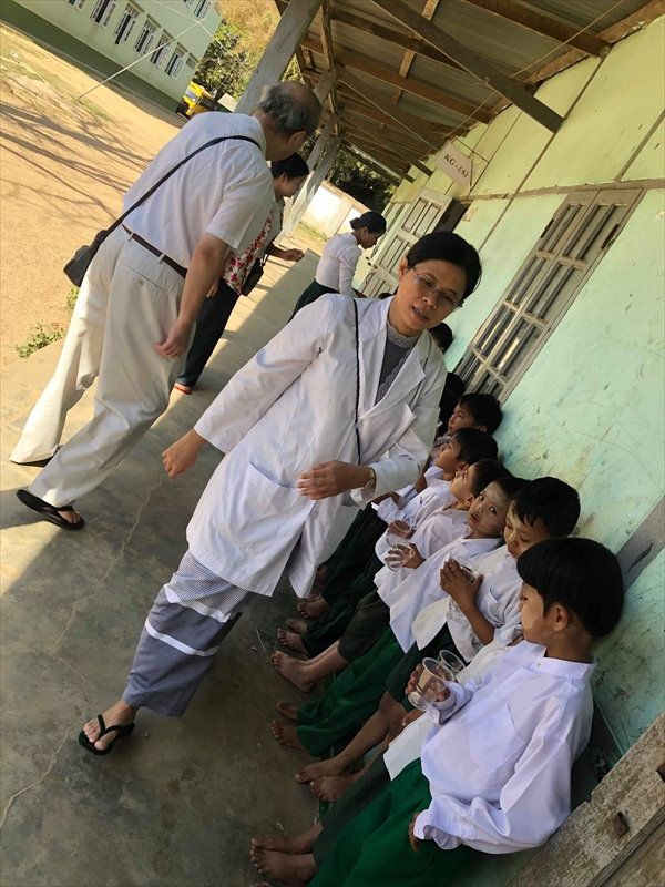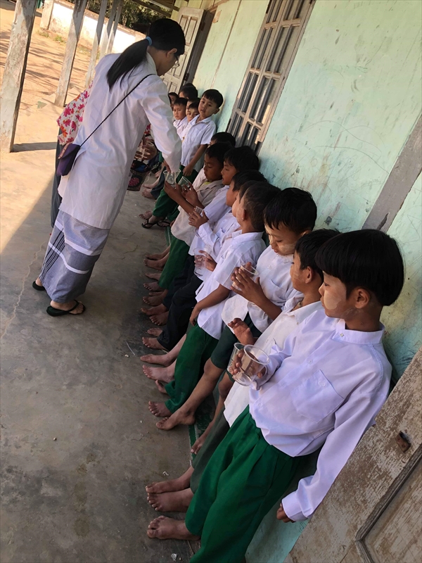 ネピドー地区モデル校2校にて実施中のフッ化物洗口状況を視察確認