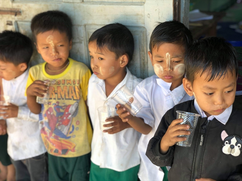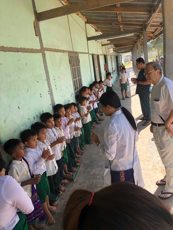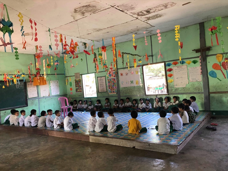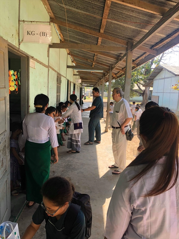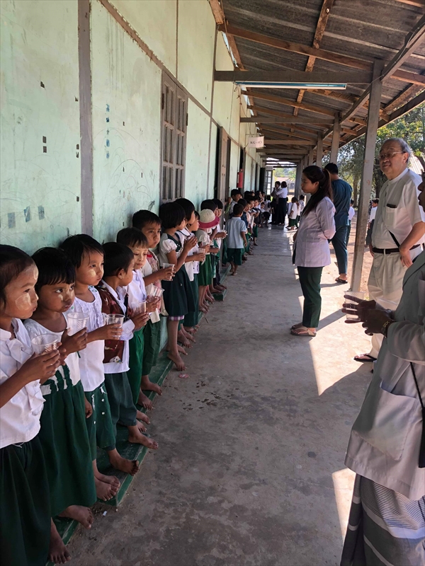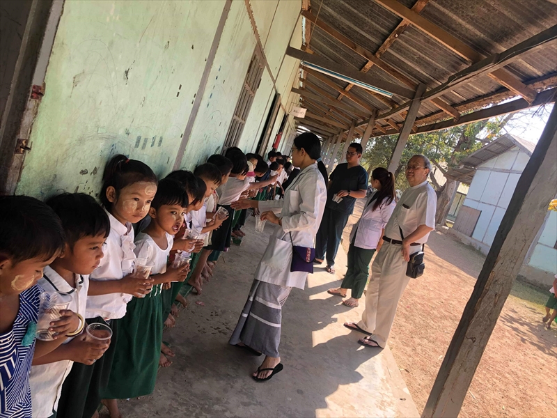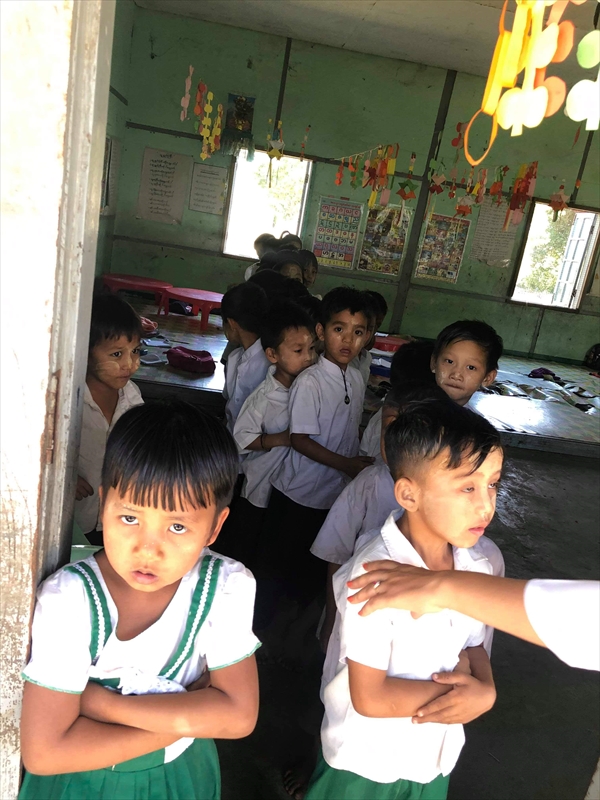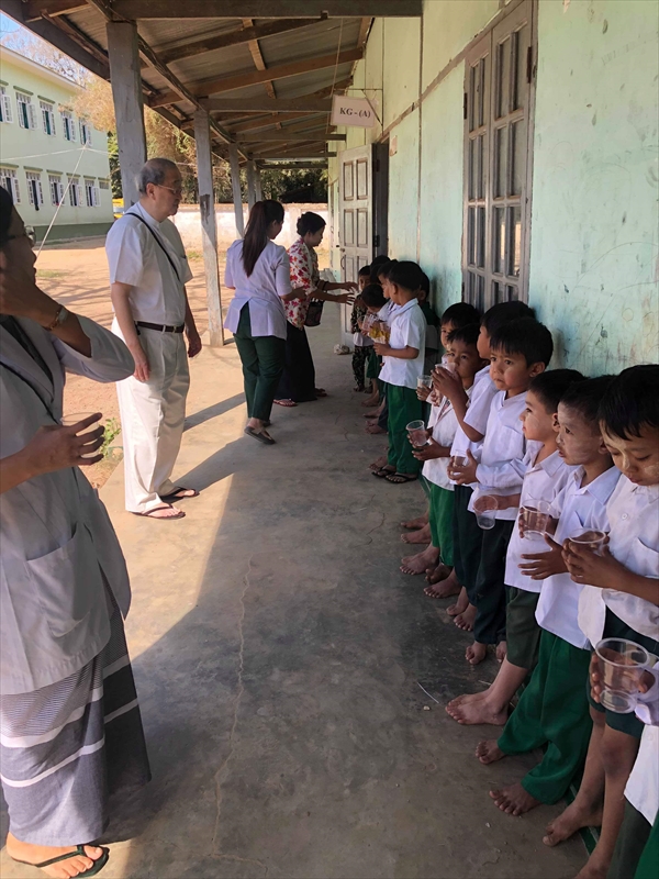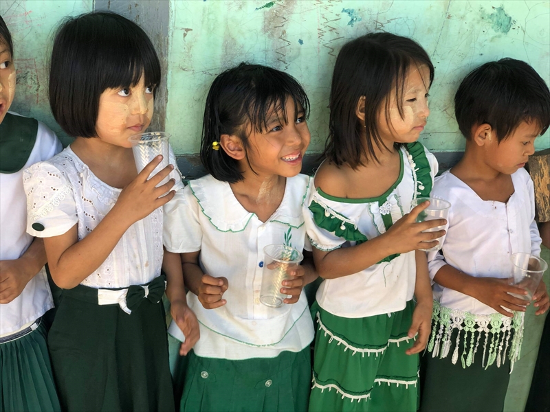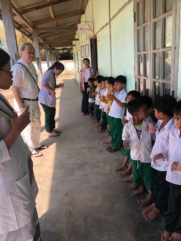 ネピドー地区モデル校2校にて実施中のフッ化物洗口状況を視察確認