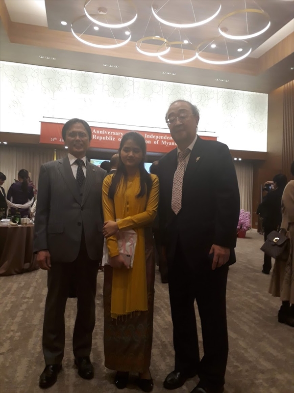 第72回ミャンマー連邦共和国独立記念式典に招待され西原達次九州歯科大学学長と共に参加致しました。 今回大使 U Myint Thu が新任されておりますのでご挨拶をさせて頂きました。前大使同様に当会へのご協力をお願い致しました。