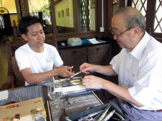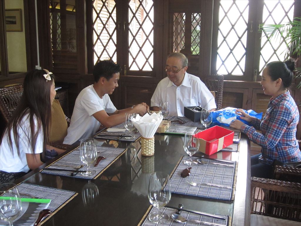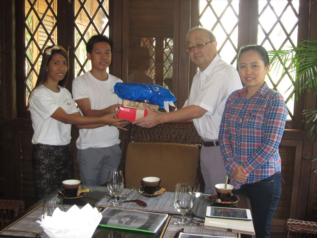 Yangonにて慈善団体Sein Lan Myay の代表 Dr. Sai wanna と会談し 同窓会会員の先生から寄付して戴いた歯科器材器具類の贈呈