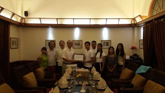 平成27年12月29日 慈善団体Sein Lan Myayに プロジェクター2台を寄贈 これは同団体運営の学校に寄贈するものであり、 学習に使用すると同時に同団体所属の児童生徒や 医師、歯科医師に対する口腔衛生指導や セミナーにも使用する予定である。