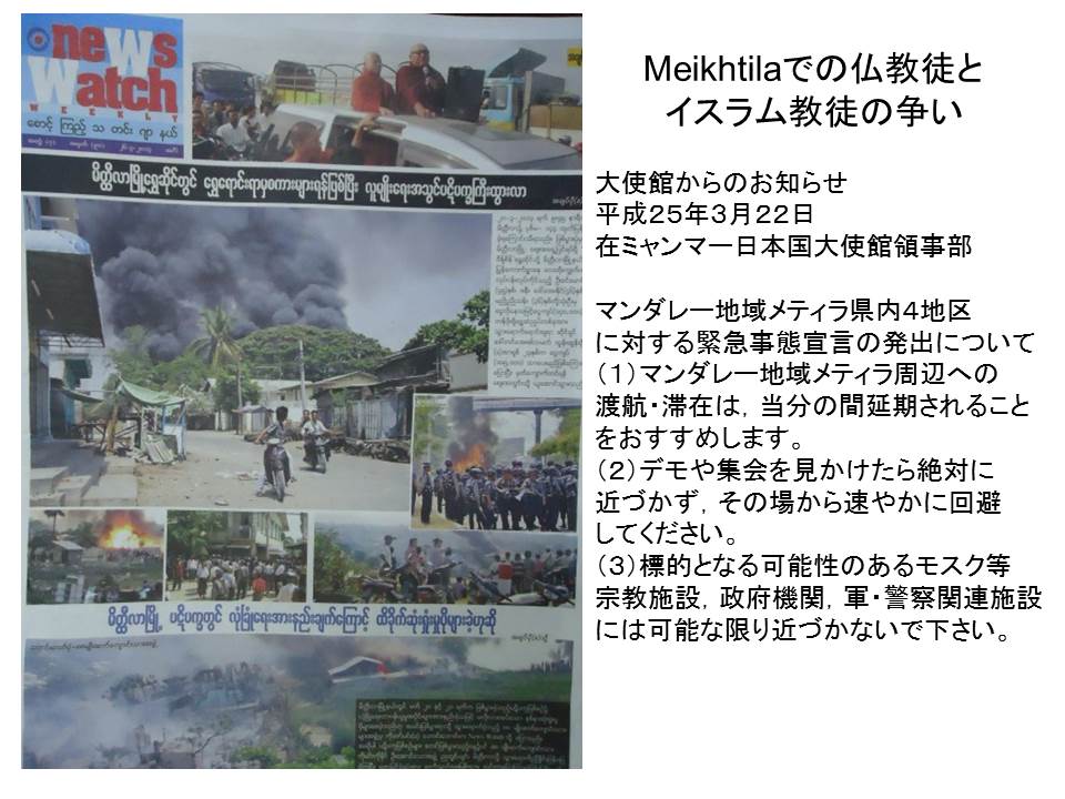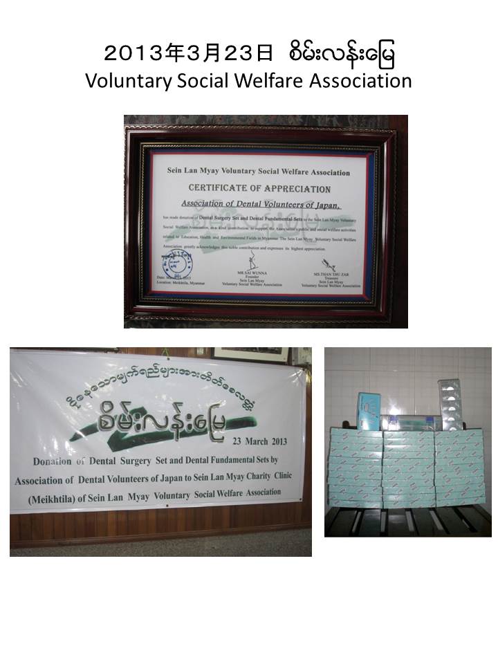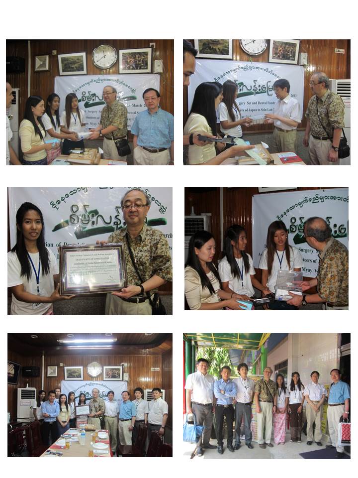 メイティラにある慈善団体の病院に行き歯科器具機材を寄付する予定が、現地で起こった仏教徒とイスラム教徒との衝突により戒厳令が出されたために急遽同団体のヤンゴン支部に贈呈することになりました。