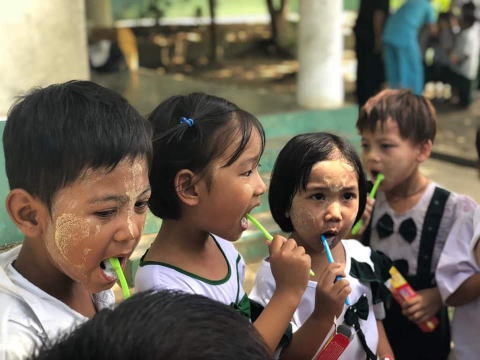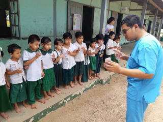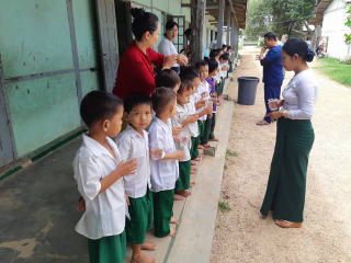 ネピドー近郊の小学校2校でフッ化物洗口事業開始(週一回法で5年間実施予定)